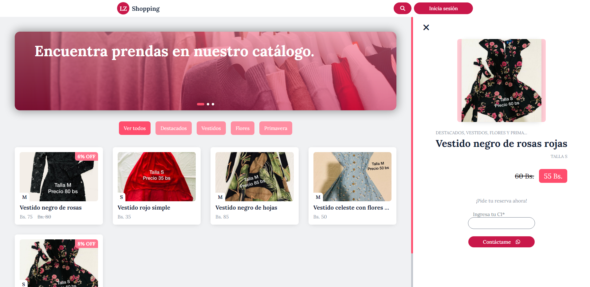 A web application for a clothing store in Bolivia, in wich you can search, filter and reserve products by your CI number, includes an administrator page for modify data and confirm reserves.